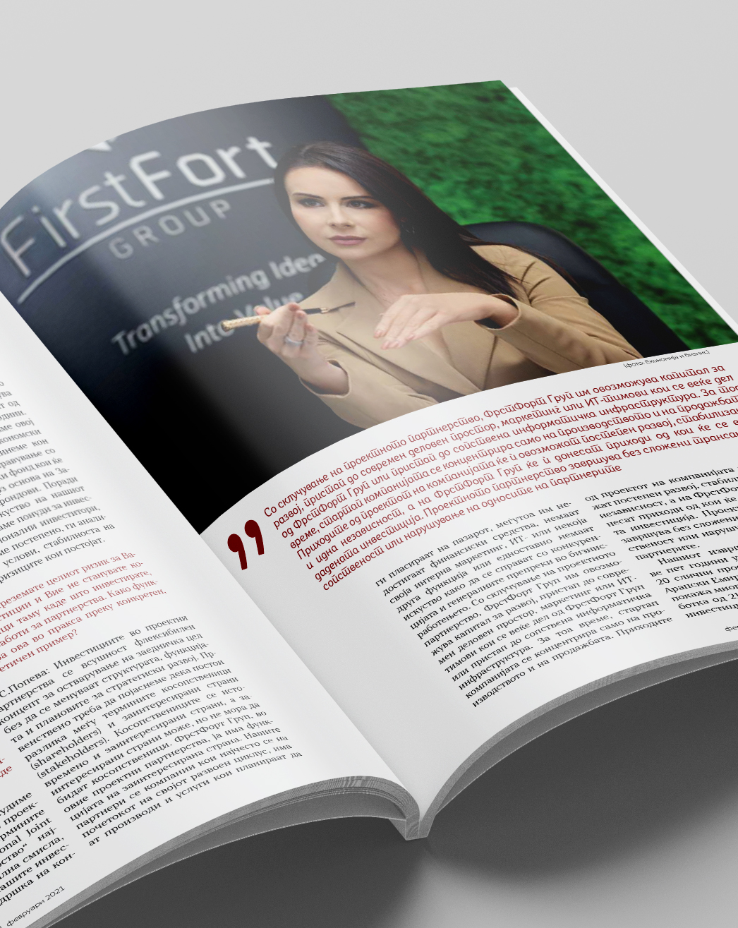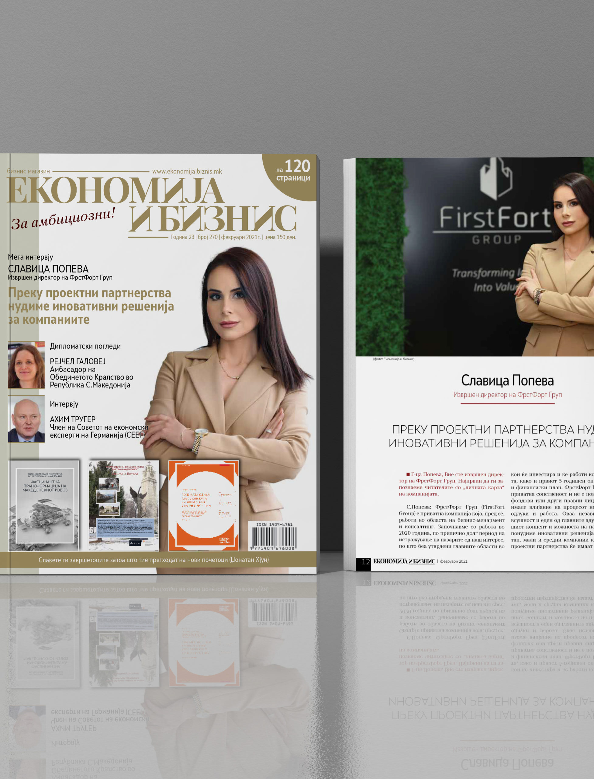 FirstFort Group becoming a cover page story for the most popular business magazine in our country! Our Executive Director, Ms. Popeva, has done an exceptional job on presenting the central areas of what makes FirstFort Group an exclusive company that revolves around a fierce mission of improving the system and changing the business sphere in North Macedonia.
